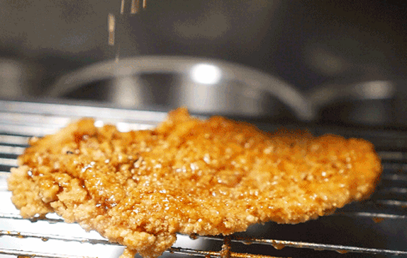甄选吸足山间灵气的散养走地鸡,用酱料360度覆盖鸡排表层,每日更换新油,恒定油温和时长下锅炸制,直至酥脆表皮日渐成型。